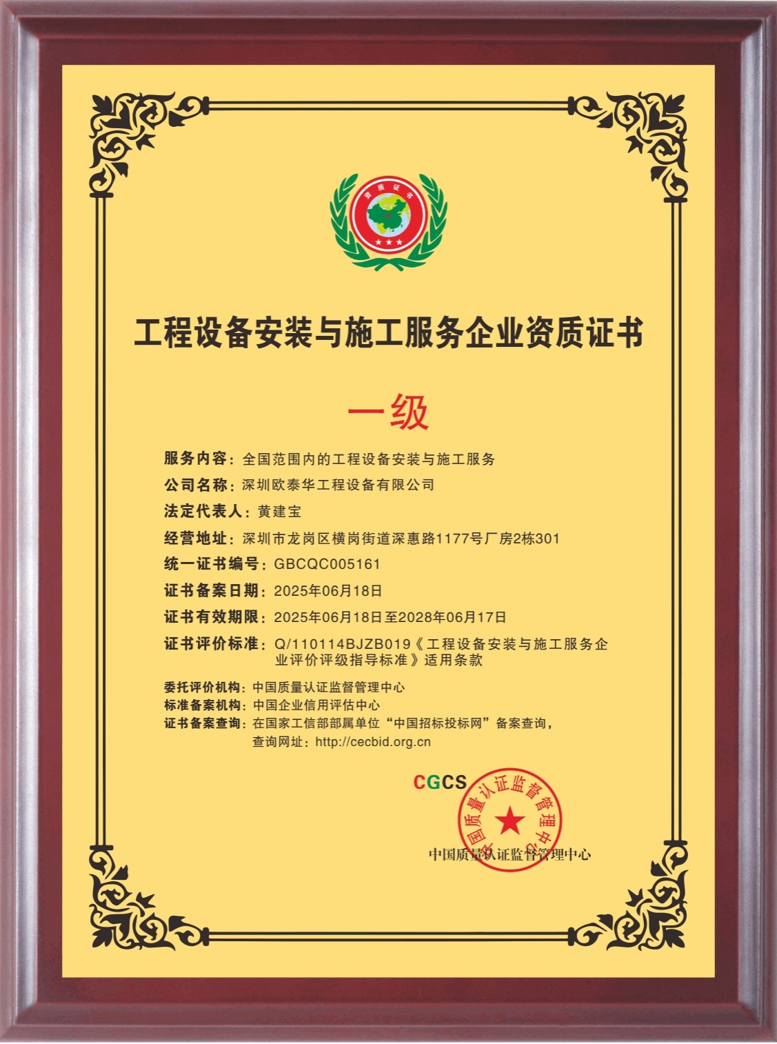 工程設(shè)備安裝與施工服務(wù)企業(yè)一級資質(zhì)