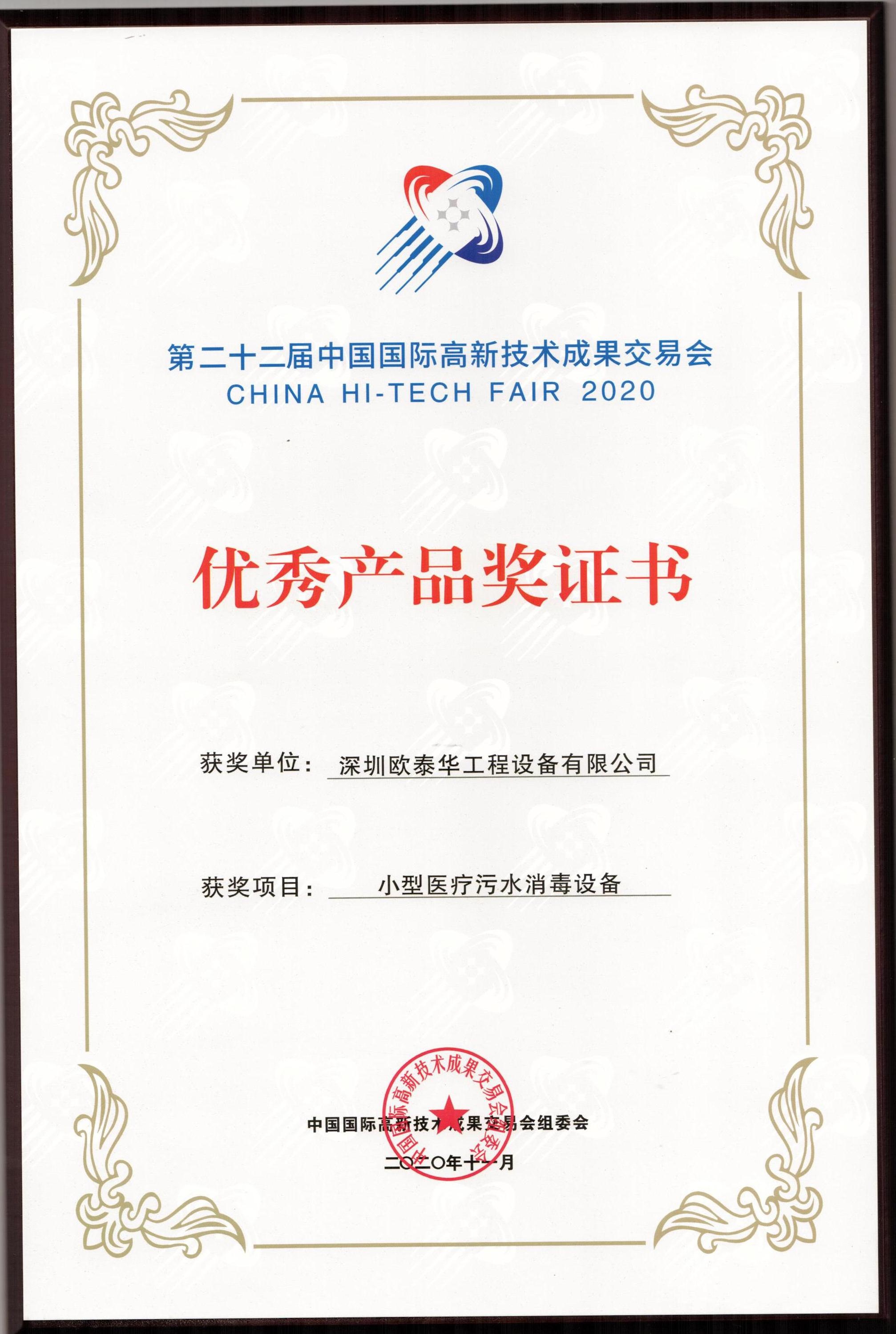 第二十二屆中國國際高新技術成果交易會圓滿落下帷幕。深圳歐泰華公司作為國家高新技術企業(yè),已陪伴高交會走過了18個年頭,產品曾多次榮獲自主知識產權證書;在本屆高交會亮相的歐泰華品牌醫(yī)療污水消毒設備又再獲殊榮,這標志著歐泰華產品在國際高科技的舞臺上再獲權威認定。