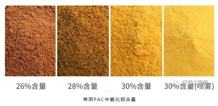 因生產工藝和原材料不同,生產出來的PAC顏色也有些差別,一般有白色、淡黃色、金黃色、褐色、棕色、咖色這六種顏色的聚氯化鋁。