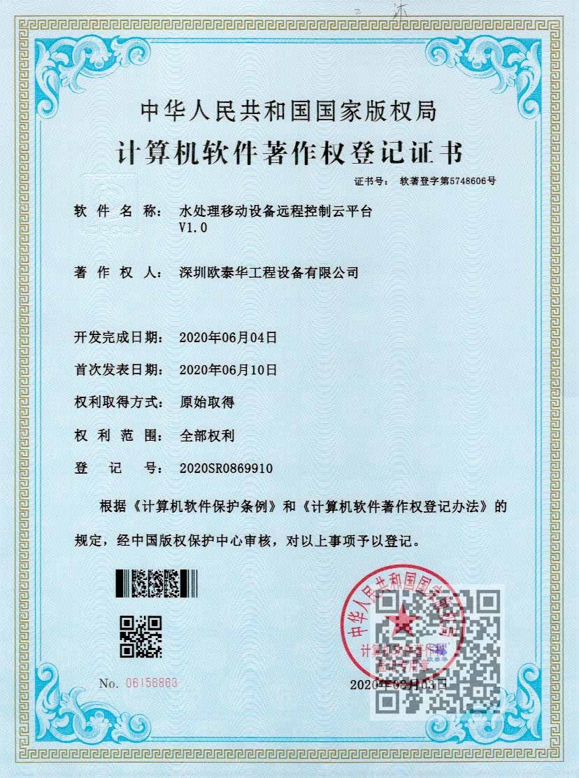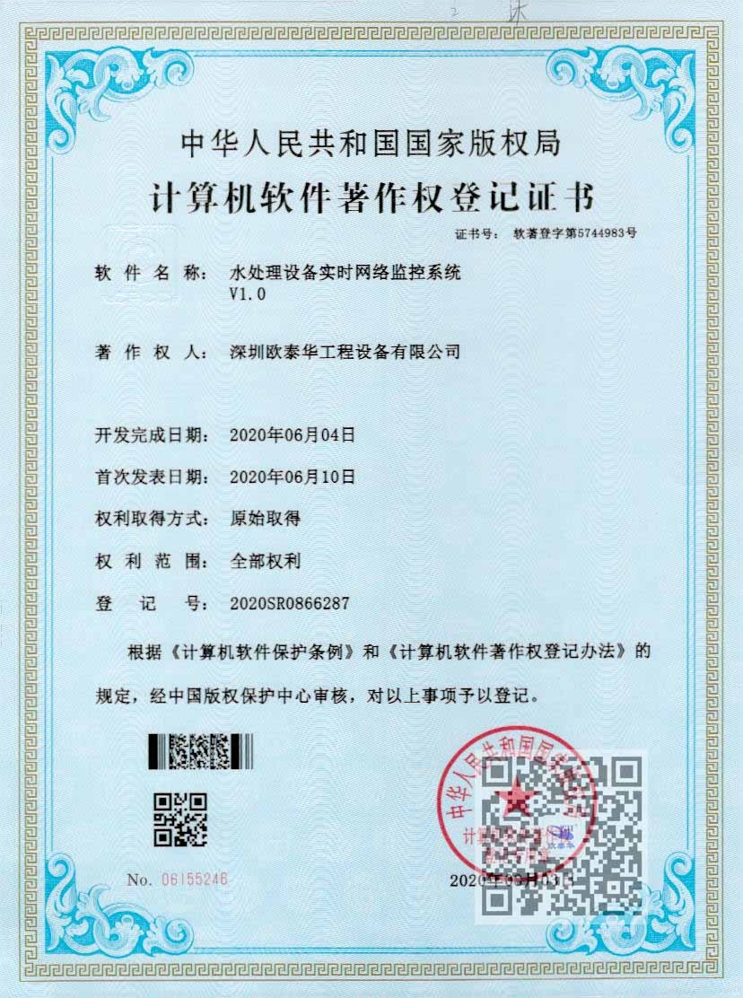 歐泰華自主研發(fā)的智慧水務系統(tǒng),擁有兩項計算機軟件著作登記權(quán)證書,整套系統(tǒng)可同各系列設備相匹配,可實現(xiàn)設備安全監(jiān)測、手機APP監(jiān)控、安全預警功能,全天無人值守、操作便捷、運行穩(wěn)定。