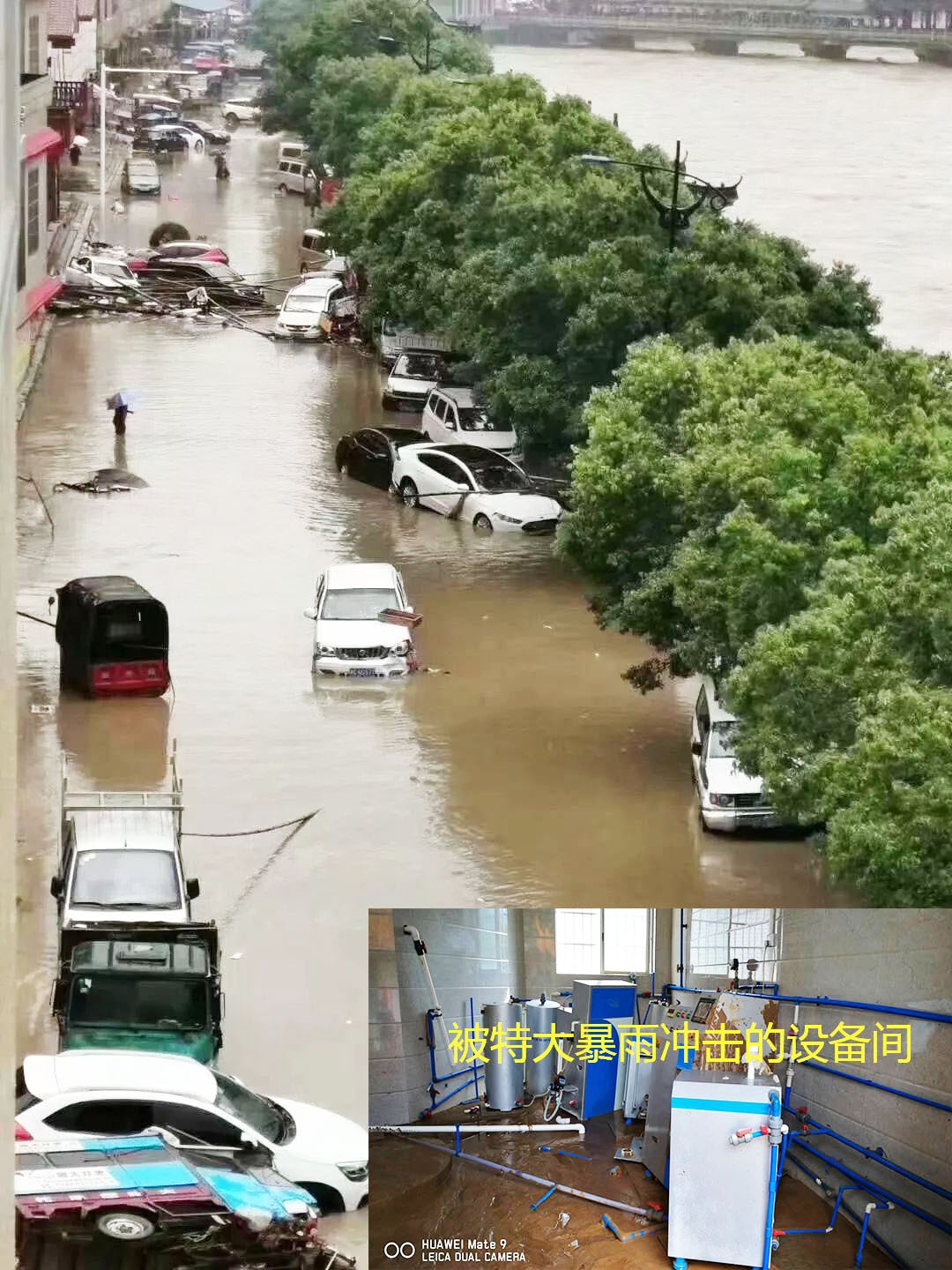 災(zāi)情就是命令!歐泰華公司連夜派服務(wù)工程師陳工趕往了用戶現(xiàn)場(chǎng),兩套二氧化氯發(fā)生器被雨水沖擊,無(wú)法正常運(yùn)行;自來(lái)水公司的消毒設(shè)備間墻壁四周還留有黃泥和1.2米高的水位線印記。